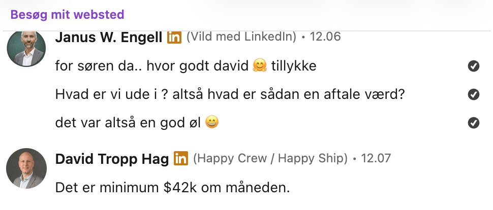 “Vi omsatte for lige over en million inden 90 dage, og status 16 måneder efter er opgaver for 15+ millioner i kalenderen”